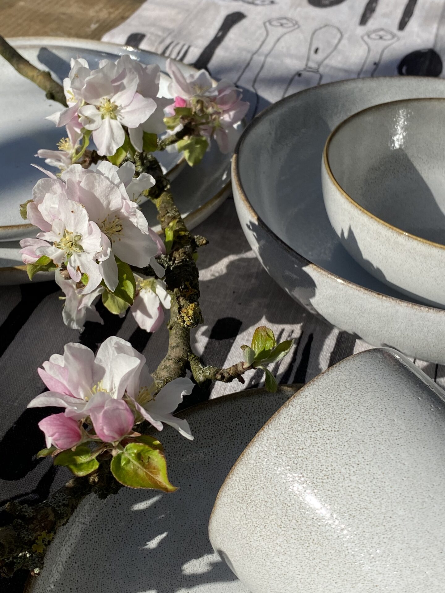 Das Schöne daran: Klassisches Geschirr lässt sich mühelos kombinieren. An diesem Mittag nur mit einem schlichten Tischläufer und ein paar frischem Zweigen aus dem Garten. Mehr braucht es nicht. Keine Inszenierung, kein Zuviel. Nur das, was stimmig ist.
